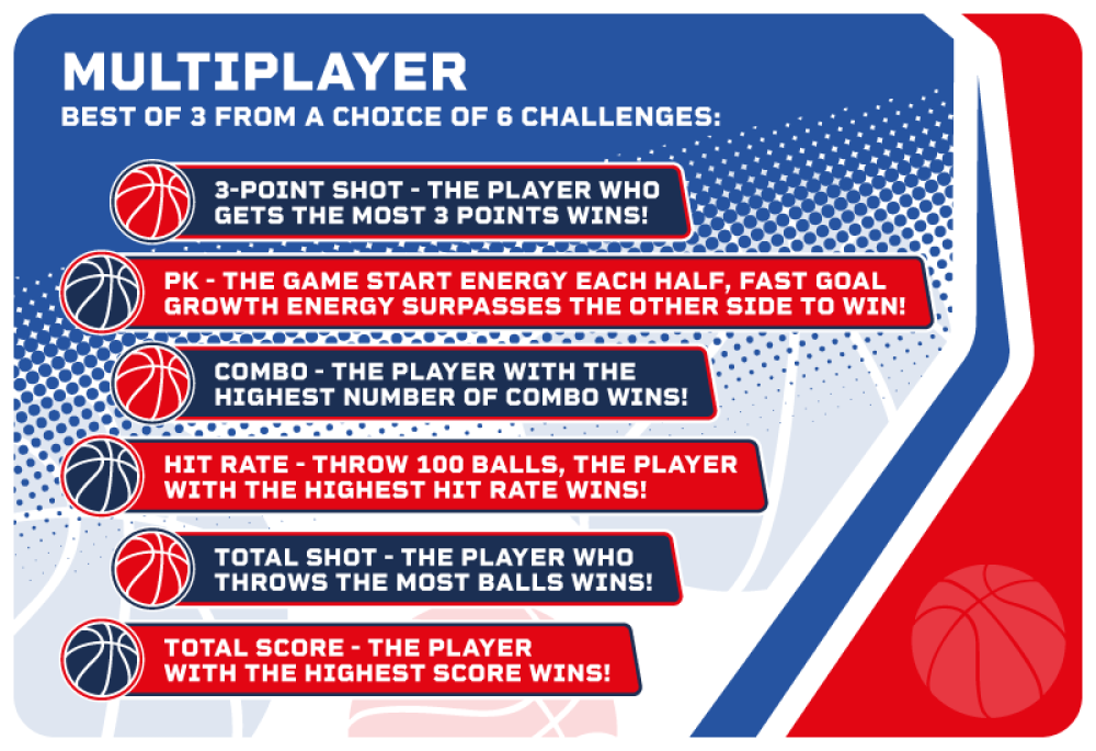 Allstars Basketball shines with its multiplayer mode by creating a fun, socially competitive game environment. Players can compete against their friends in a best of three, with six unique game challenges to go head-to-head.