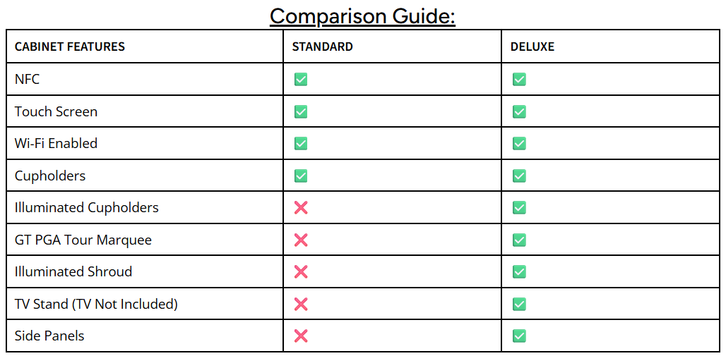 - One (1) Golden Tee PGA TOUR Clubhouse Edition (choose Standard or Deluxe model)