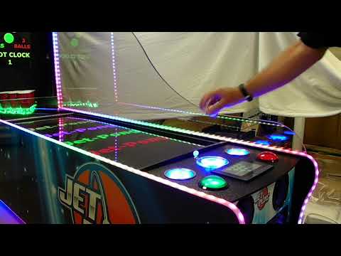 Jet-Pong is an electronic coin-operated version of the novelty game Beer-Pong. This innovative tabletop game allows for 1 or 2-player modes and features our patented Aerr Technology ball return. This game also features HMI Scoring Screens, Video Display Advertising Screen, Custom LED Lighting, a Matrix LED Playfield, 200 Watt Speaker system, Custom Sounds for Scoring and Attract Modes, Built-in Wireless, and meets local, city, and state liquor license guidelines allowing it to be used in bars, restaurants, resorts, cruise ships, college campuses, FEC’s and bar-cades. Jet-Pong does not require the use of liquids, of any kind, allowing this game to function without the mess, as well as be one of the top money earners in any establishment. Jet-Pong is available is both 120V and 220V.
